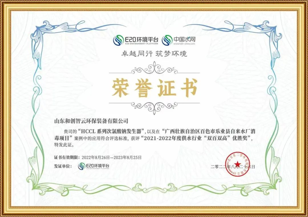 我们的设计成果已获得多项荣誉:“2021-2022年度供水行业‘双百双高’优胜奖”、“生态环境创新工程百佳案例”等。